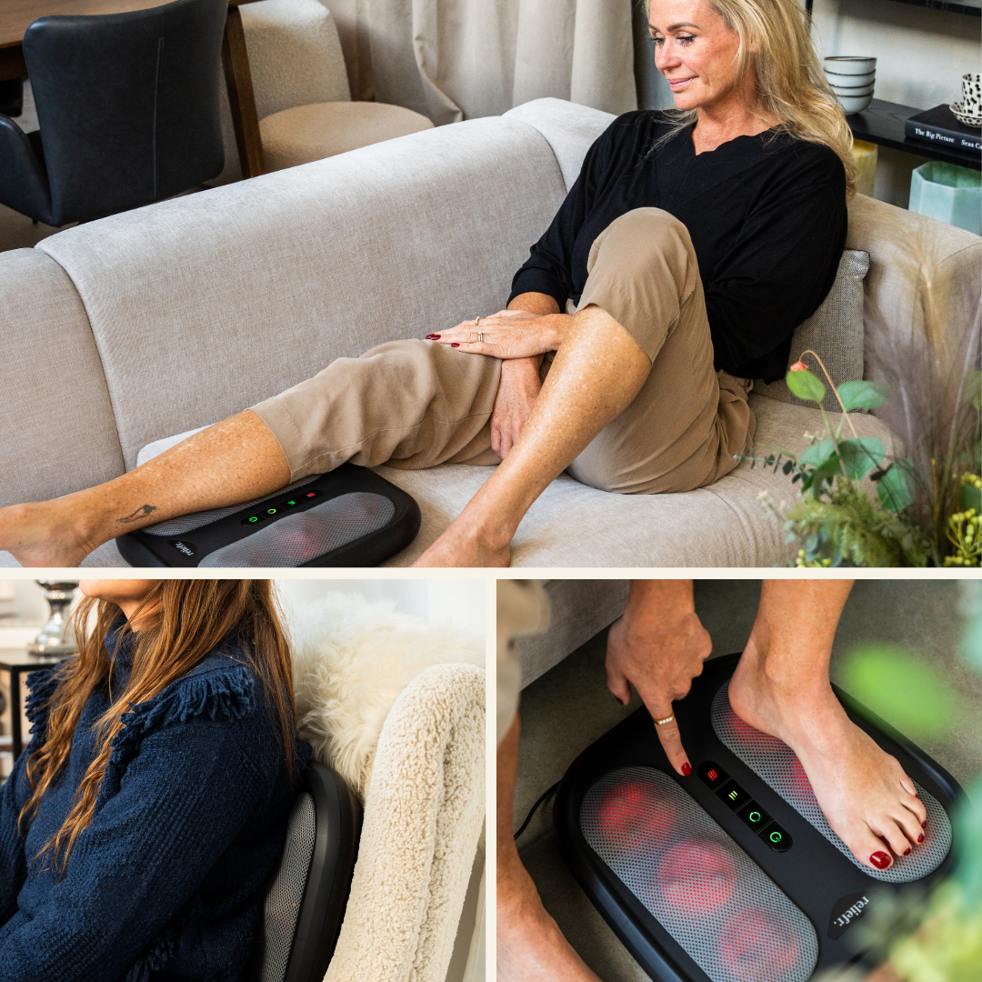 Den kombinerar värme och djup massage för att lugna nerverna, från fötterna och uppåt. Känslan liknar en skön, professionell behandling, fast hemma i din egen soffa.