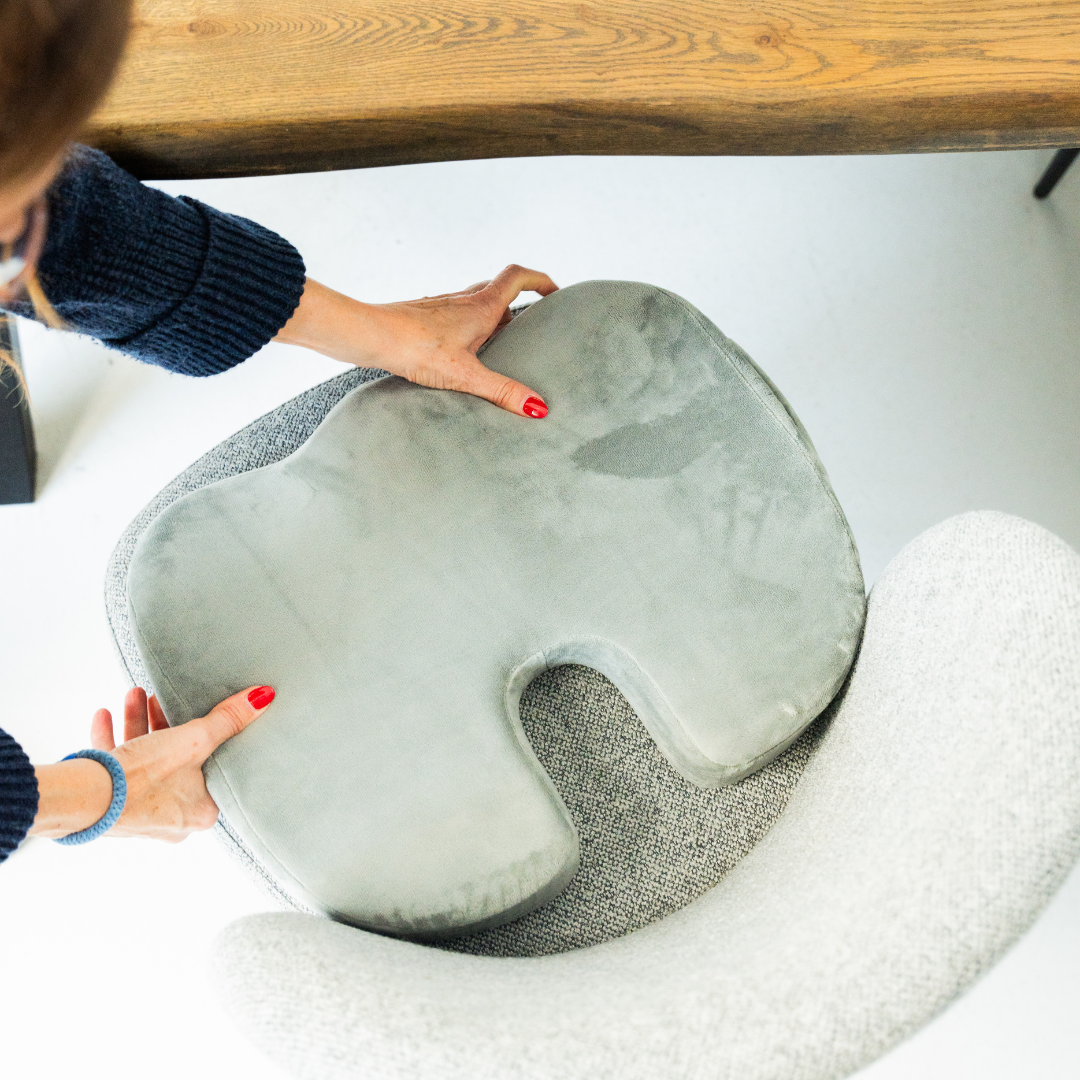 Kudden Àr formad för att stödja dina lÄr och höfter, vilket gör att du kan sitta upprÀtt och bekvÀmt. VÄr sittkudde hjÀlper till att lindra smÀrta i rygg, höfter och svanskotan, samtidigt som den förbÀttrar din hÄllning nÀr du sitter.